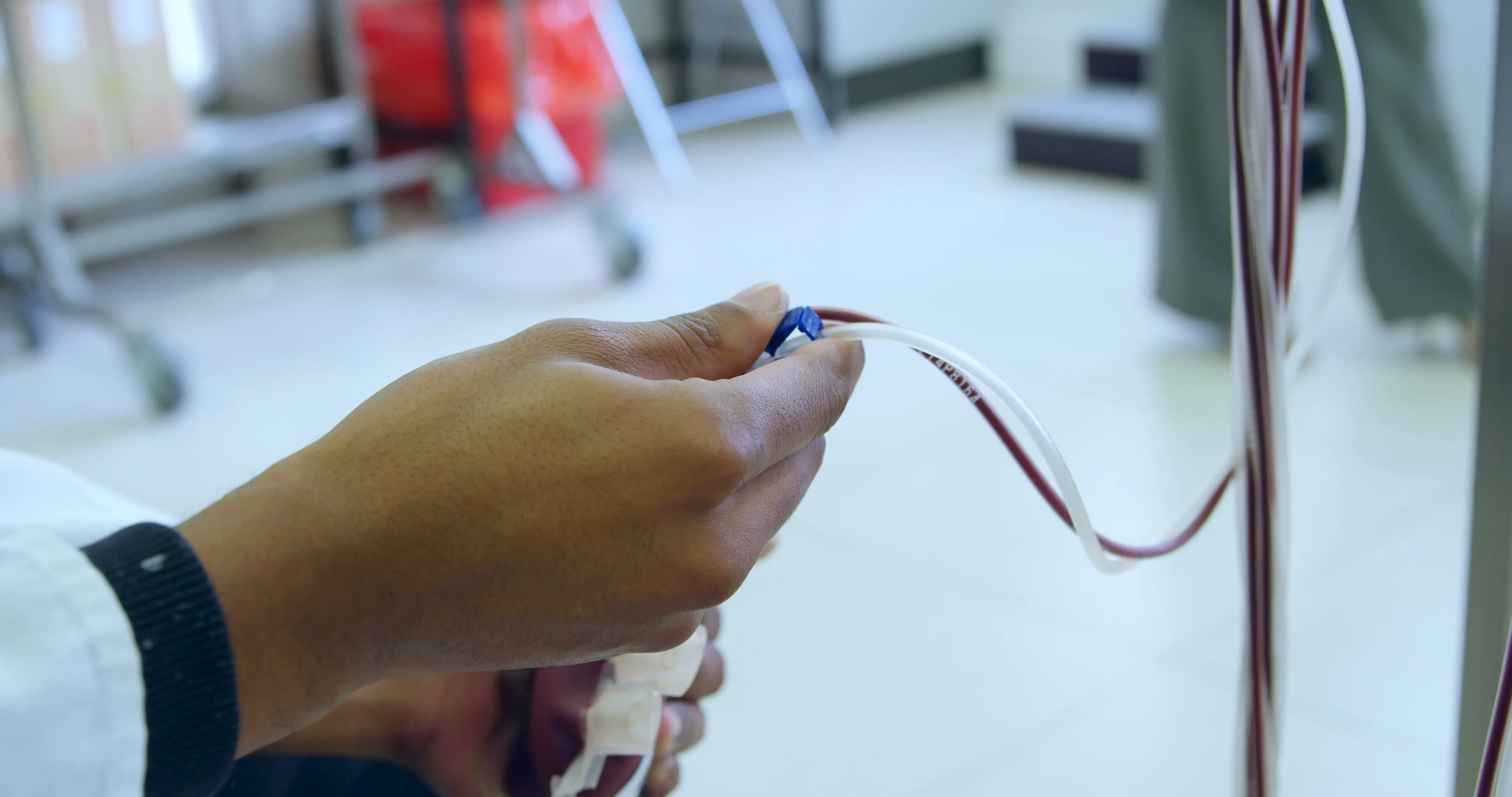 Before an outpatient blood transfusion, medical professionals run tests to make sure that donated blood matches the patient’s blood and is safe to use.